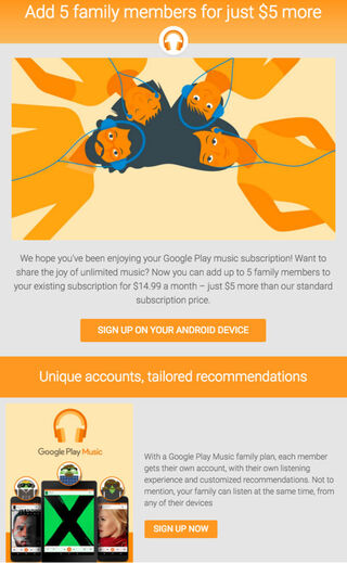 Google play Music launched their Family Plan today. For an additional $5 per month you can add up to 5 more users.