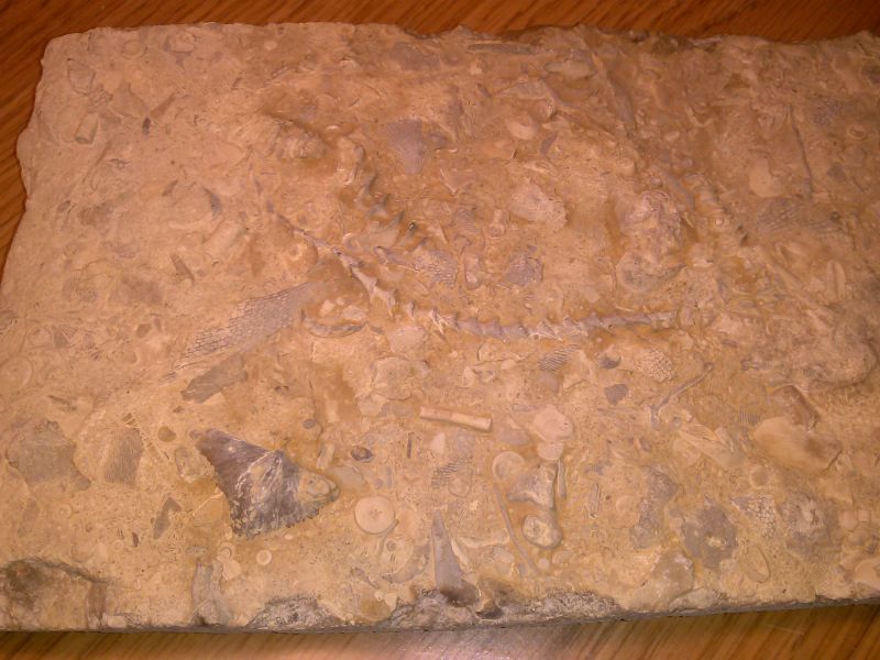 In the above picture, you can see many different fossils. If you click to enlarge it, you'll see more than you thought was there. The following picture doesn't have as much on it, but what it does have is neat.
